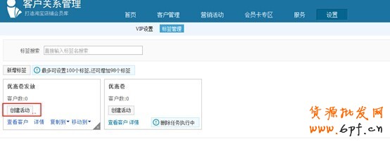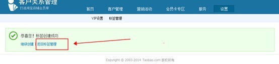 3、點擊上圖確定后,創(chuàng)建成功,點擊返回標(biāo)簽管理,創(chuàng)建優(yōu)惠卷信息。