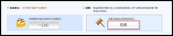 注意:商品發布以后,發布方式不能相互轉換,如無法將一口價修改成拍賣。