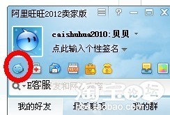 將剛創建好的子帳號caishuhua2010:貝貝登錄阿里旺旺后,就可以在主界面的左上角找到E客服的圖標了哦!