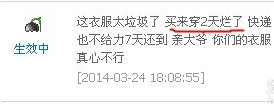 這里需要注意一點(diǎn),買家所說的穿一次就爛了,到這里又變成了2天.到底是穿了幾天呢??? 買家說快遞慢,也是買家當(dāng)時(shí)要求發(fā)的申通,所以我們才聯(lián)系的申通快遞. 文筆有限,不能將內(nèi)心復(fù)雜的難受寫出來.只覺得百般的無奈,買家不高興發(fā)脾氣,我們一直再說對(duì)不起,不好意思,快遞慢了,我們?cè)僬f對(duì)不起,不好意思.買家給中差評(píng),我們也在對(duì)買家說對(duì)不起,不好意思.開店半年以來,我覺得說的最多的一句就是對(duì)不起,不好意思.