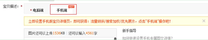 手機(jī)內(nèi)頁詳情裝修:在PC端后臺請看手機(jī)端,注意紅色字體,設(shè)置手機(jī)版寶貝詳情。