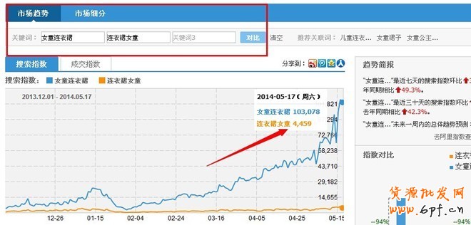 可能很多人到現在為止還是不知道關鍵詞調換位置有沒有影響,只是去淘寶搜索頁面調換關鍵詞位置,看看寶貝排名有沒有影響而已,其實這些真的是次要的,當我們優化標題的時候,會很糾結一個問題,例如:我標題里 到底放 女童連衣裙 還是連衣裙女童呢?我到底是放兒童連衣裙呢 還是放連衣裙兒童呢? 很多人腦海中肯定會跟著疑問,那我們在利用淘寶指數查一下,我們到底該用哪個關鍵詞呢?