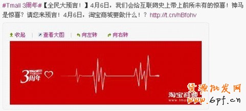 二、因時制宜,創意引爆營銷:在聲音嘈雜的營銷環境中,企業若想脫穎而出,就必須制造爆點。淘寶商城舍棄“以我為主”的單向心態,搭載已有熱點或者利用用戶熱點,用創意在前人的肩膀上實現傳播效果最大化,引爆營銷。淘寶商城的三周年慶時,天貓利用愚人節的時間契機,在微博上發布一條博文。一石激起千層浪,博文不僅激起網友極度好奇,競相評論語言,用懸念話題讓網友心生期待,翹首以待,在短短幾分鐘時間內,上千條轉發,上百條評論,傳播效果不言而喻。此外還借助名人效應,通過新浪微博紅人星座小王子、湖南衛視著名主持人文怡、財經名人和根芳等人的轉發評論,在明星當中刮起“愚言”風,一時間“淘寶商城愚言體”,“XX要干什么,XX頓時表示鴨梨很大!”,如雨后春筍般浮現出來,妙趣橫生,用創意引爆一場絕妙的事件營銷。與此同時,淘寶商城通過微博向用戶征選圖片創意,將隨機選出一位幸運的消費者獲得淘寶商城首頁的寸土寸金之地,即首屏大圖的使用權限,在4月15日將自己希望的圖片內容放在此處。一個懸念,一個愚言體,一個最特別的獎品,淘寶商城利用微博,在時機契合之下用創意為淘寶商城三周年慶宣傳造勢。