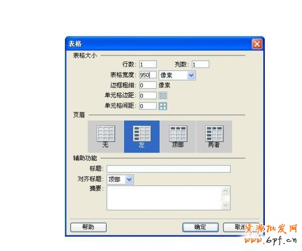 4、點擊“表格”的選項,設(shè)置表格選項(建議先做好頁面布局、效果圖,并切好片)如下:
