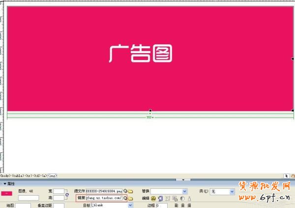 7、當你設(shè)置好圖片后,可以給圖片設(shè)置相對應的鏈接,切換回“設(shè)計”界面,選中圖片后,在頁面下方的屬性框“鏈接”處填寫圖片點擊后要展現(xiàn)的頁面,然后將“目標”設(shè)置為“_blank”,意為點擊圖片后鏈接的頁面在新窗口打開(可自己決定設(shè)置或者不設(shè)置哈),如下: