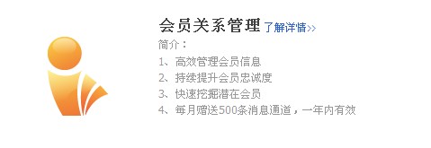 會員關(guān)系管理:會員制作分兩種,1種是按照買家交易額,另一種是按照買家交易筆數(shù),需要我們劃定一個規(guī)則,達(dá)到多少是高級會員,再到多少就是VIP會員。會員卡也是提升回頭率一個非常有效的方法,比如我有某個店里的會員卡,恰巧我要買的東西他的店里有,那我一定先去他的店里看一看,算一下這個折扣是不是更合適一些,沒有用的朋友可以去阿里旺旺網(wǎng)店版研究下。會員關(guān)系管理的主要作用有