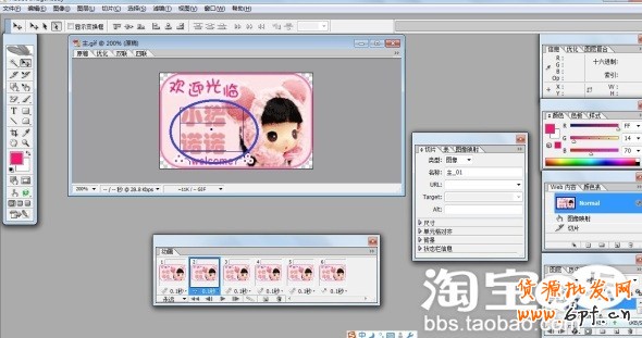 剩下的部分我們只需要利用adobe ImageReady 也就是photo shop 安裝時一起組合的軟件 來為這個動態圖片添加動態字體!
