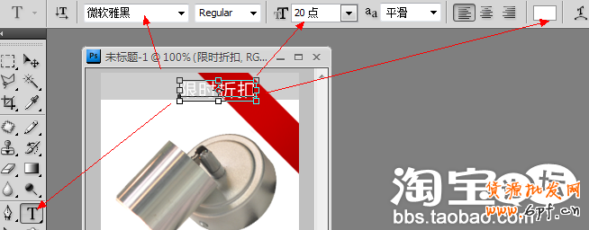 g:在如圖位置輸入文字:限時折扣,參數(shù)如圖所示。