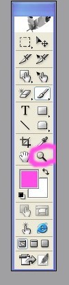 最大化彈出的圖片框,開始對圖片進行編緝.點擊左邊工具欄中的"放大"工具,如下圖那個紅色圈起來的就是放大工具.