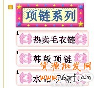 開店初期我沒想過自己做分類圖片,因為覺得麻煩,所以去問了一些淘寶上賣分類模板的賣家,就發現一個問題:因為分類圖片只能以圖片地址的形式插入進去,所以一旦做好就不能更改,就是說你看好底圖樣式,把你的分類名稱發給賣家,賣家幫你做好帶分類文字的分類圖片發給你,你直接上傳就可以了。如果你想修改你的分類還得找賣家幫你修改,又得收一次費用。我覺得這樣做既浪費時間又浪費金錢,特別是新賣家,分類也經常有改動的。正面進入正題,以我店里的分類圖片為例來給大家講解!發個全局的效果圖,是截的圖看不出閃動,實際店鋪里是閃圖哦!