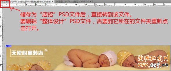 調整好圖片位置后先做些整體的設計,如加入店名、收藏我吧、工作時間等,也可以在適當的位置添加圖片,自我發揮吧。需要提醒的是,此步僅作靜態的設計,動畫設計等請不要在這步做出,待下面存儲為獨立的“店招”、“左側欄”和“自定義促銷欄”PSD文件后再編輯。