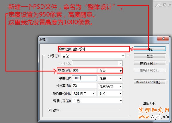 首先我們要在PS里用切片工具設置出店招、左側欄和右側自定義欄的尺寸: