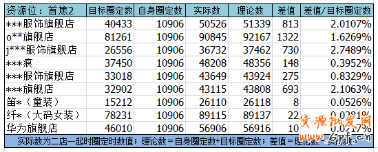具體操作如下:先把自己的店鋪放進去,記錄圈到的人數A(選流量大的資源位,如首焦2),再把目標店鋪放進去,記錄圈到的人數B: