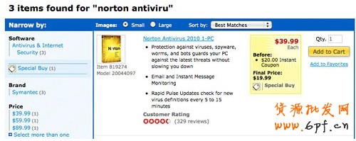 新蛋就不錯,有很好的軟件產(chǎn)品展示方式——包含諸多瀏覽要點:支持的操作系統(tǒng)O/S、系統(tǒng)要求、退貨制度,附帶“ADD TO CART”添加到購物車按鈕與價格/運費等信息。