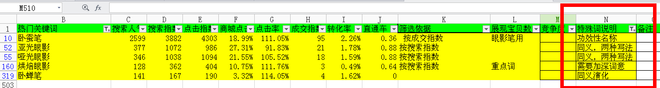 c.有一列是“特殊詞說(shuō)明”,這列需要重視,一些錯(cuò)誤演化詞,功效同意詞,自己不了解意思需要推敲的詞等,一定要記得備注下,比如“啞光 口紅”和“亞光 口紅”,眼影筆下面的“臥蠶筆”“臥蟬筆”等等,你會(huì)淘到意想不到讓你豁然開(kāi)朗的一些好詞。