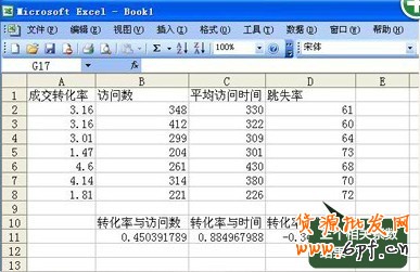 我們必須列出可能影響轉化率的所有因眾,通過Correl函數計算他們之間的相關系數.從而找到主要原因。