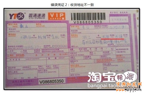 - 憑證與物流信息不一致即:底單上的收貨信息與快遞官網的跟蹤信息不一致。