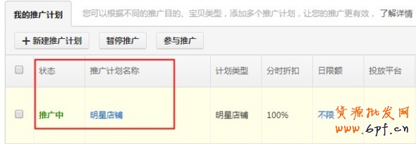 2)明星店鋪計劃是否處于正常推廣,暫停情況下,則無展現(xiàn),可點擊參與推廣;(有時候往往看到創(chuàng)意是推廣,但忽略了計劃是否正常推廣)