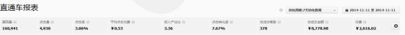 雙11當天全店成交用戶數1336筆,直通車成交324筆。約占到了全店的1/3。雖然對于這個結果我還不是很滿意,但是至少,這個店鋪每天直通車可以帶來的單子已經達成了掌柜的期望,而且還有點賣超。過了雙十一之后這幾天,一直是出于“后雙十一”時代,這個時候買家的購買力普遍下降,已經沒有那么大的購買需求,而我們的店鋪依然是高歌猛進,成交筆數每天約在100筆左右。