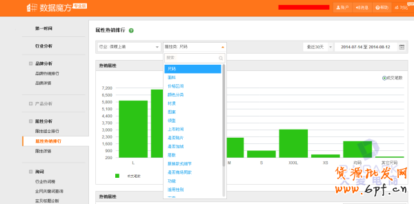 有了子行業大方向,我們接下來要從幾個方面把握寶貝屬性,規劃寶貝結構,分別是:寶貝的價格區間、顏色、材質、圖案、領型等等,這些寶貝屬性都可以在數據魔方查找。查找路經是屬性分析=》屬性熱銷排行、最近30天中找到數據來匯總,歸納,分析和總結。