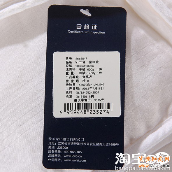 實物的資質信息包括:商品的吊牌(合格證)、耐久標、產品外包裝等。