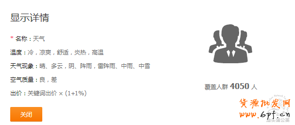 目前設(shè)置一個(gè)天氣人群,可以根據(jù):溫度、天氣現(xiàn)象、空氣質(zhì)量進(jìn)行精細(xì)化分層,測(cè)試天氣人群的點(diǎn)擊率和花費(fèi)。