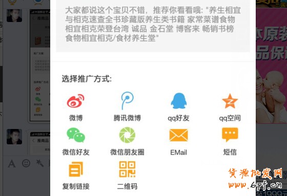 第六步,選擇推廣的方式,可以分享到微博,QQ好友,QQ空間等,也可以復制鏈接,我們選擇微信朋友圈。