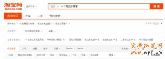 在整個14寸筆記本屏幕的搜索中,共有4649款寶貝,整個類目的競爭方面較之大類目小了很多。