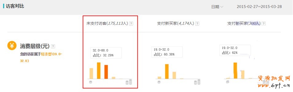 從上面你的數據看來,未支付的訪客當中,消費層級在19-32元的占37.79%,32-88元的占32.29%,這兩個區間的百分比相當,可見優惠券的設置要針對消費層級在32-88元人群進行設置,促進轉化。這部分的訪客,可能是由于店鋪的頁面不夠美觀,優惠力度不夠吸引,或沒有找到合適檔次(32-88元)的產品,因此我們一方面可以考慮針對這個消費層級主推幾款高質產品,另一方面也可以考慮在這個額度設置一個優惠券的門檻,促使這部分訪客對這幾款產品的購買轉化。