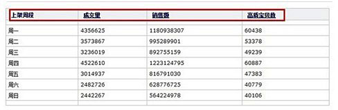 通過這些數據,我們就可以知道哪天的哪個時間段的成交最多,哪天的哪個時間段的高質量寶貝數最多,哪天的哪個時間段的競爭最小。