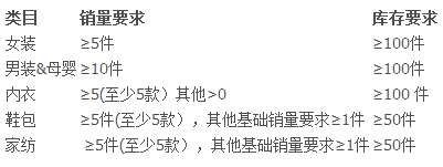 二、開放類目:女裝、男裝、內(nèi)衣、家紡、鞋包、家居、收納、食品、戶外、童裝、小家電