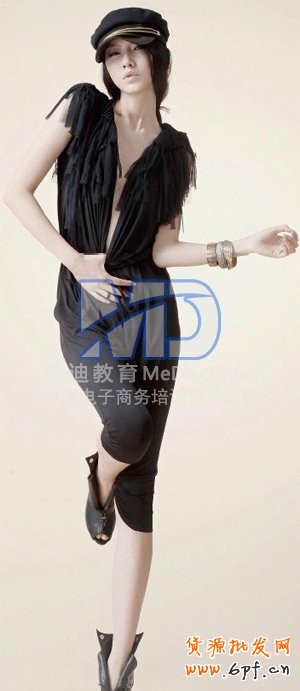 這是一張棚拍照片,由攝影師與模特溝通后,模特變換動(dòng)作擺拍完成。一身黑色搭配星星點(diǎn)點(diǎn)的金色飾物顯得內(nèi)斂不張揚(yáng),模特臉上的冷峻表情也為衣裝蒙上了一層**的魅力,層層疊疊的流蘇搭配模特的單腳姿勢(shì)線條,讓整件衣服看起來(lái)與眾不同。這種短暫擺拍的照片,要注意模特的姿態(tài)詮釋。