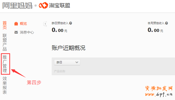 4、進(jìn)到淘寶聯(lián)盟后找到左側(cè)的“推廣管理”并選擇