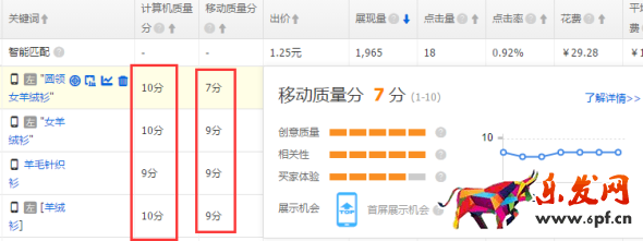 從上圖可以看出,我們主要的引流詞都有了手機標志,移動端的質量分很多都是9分,至于第一個詞,也只是由于轉化率方面的影響,才拉低了質量分,其他兩個維度“創意效果”“相關性”都做到了滿格。說明,只要后期產品的轉化率隨著行業慢慢向好,這些詞的質量得分還會變得更高。如今我們這款產品的平均點擊費用不到兩塊。