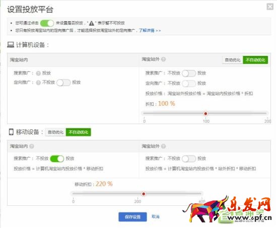 投放平臺(tái)可以只投放淘寶站內(nèi),將移動(dòng)端的比例拉高。