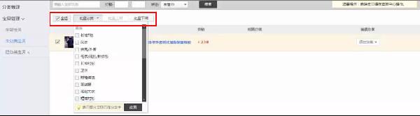 2、在右邊有一個編輯分類,這個按鈕是針對單獨寶貝分類添加,點擊之后出現(xiàn)下拉框,勾選對應(yīng)的分類。