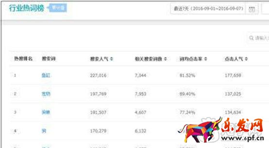 一般情況下,這種核心詞都是類目詞或者產品詞,通過這個你可以分析一下當前的熱門子類目和熱門產品,雙十一當天一定是越熱越好,因為流量會超級的大。至少從上面的圖中,我們可以簡單的分析一下:魚缸、狗糧、寵物衣服等等這樣的類目接下來會越來越熱。那么在雙十一到來之前,這個店鋪就應該在這幾個類目的產品上,在有條件的前提下重點優化布局。這里需要說明的一點是: