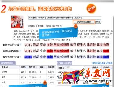 把你找的詞和人家的詞作比較,把人家的標題多讀幾遍,多看幾家標題,當然,你是什么類目,就看什么類目的標題,這個時候你可以模仿去寫,用自己東西模仿寫,別傻啦吧唧的把別人家的標題直接盜用來了,人家是大賣家,皇冠、金冠店鋪,你用人家標題,寶貝權重、店鋪權重沒人家高,顧客搜索的流量,全展示的人家店鋪,都不知道自己怎么死的。