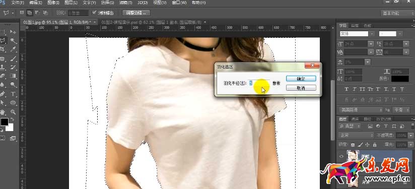 然后按shift+f6將這個(gè)區(qū)域羽化1至2個(gè)像素,在進(jìn)行delete鍵的擦除。