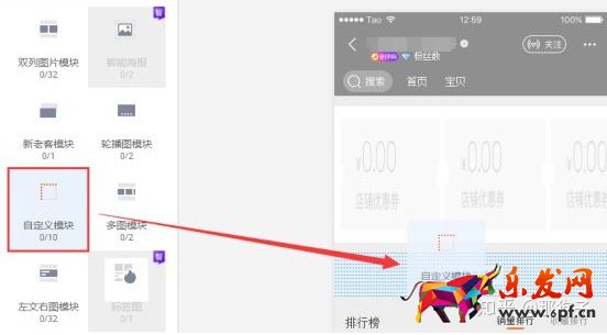 4.選擇【圖文類】—【自定義模塊】,左鍵進行拖動添加。