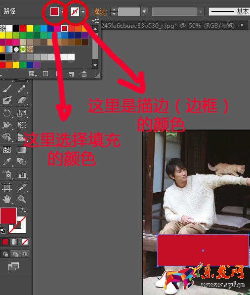 我們點一下矩形工具,用鼠標拖一個紅框出來,填充上紅色。
