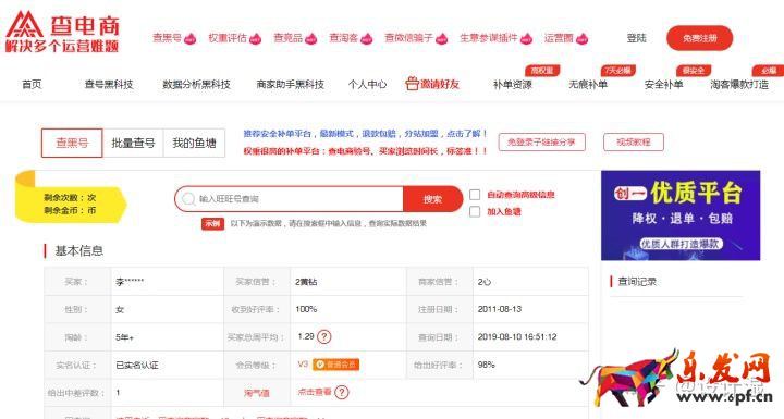 查電商是千萬級黑號數據庫,由大數據采集+用戶打標共享,數據有時候精準的,可以有效排除市面上大部分的降權黑號、狐貍號。
