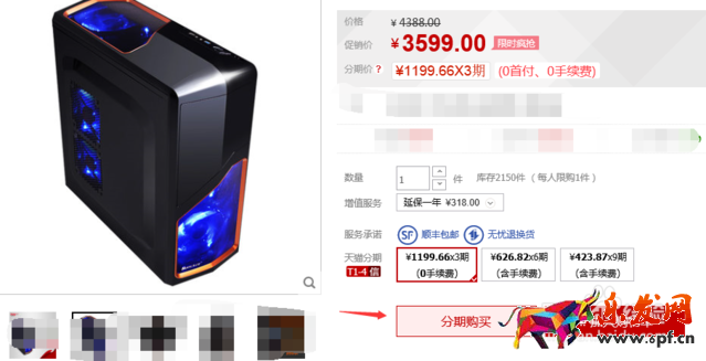 在分期選項后面還有具體的分期選擇,這里我們選擇自己喜歡的分期模式點擊購買。