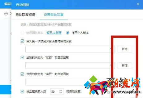 5.點擊后方的“新增”,然后輸入想要自動回復的內容即可。