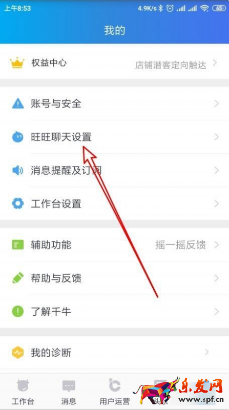 2、然后在打開的我的詳情頁面中點擊“旺旺聊天設置”的菜單項。