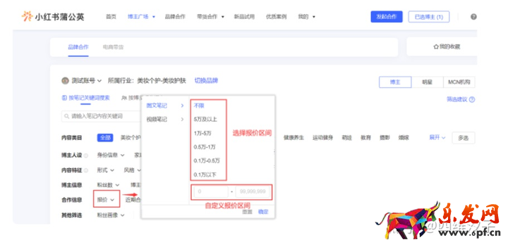 根據預算,篩選圖文或視頻報價區間或自定義輸入博主報價(*博主報價最低100元)