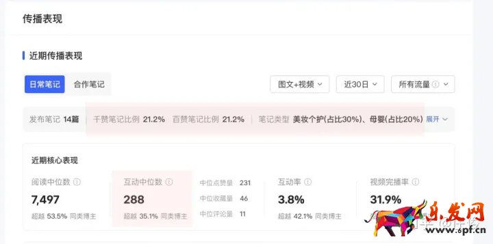 2、頁面新增數據概覽、傳播表現模塊,同時 筆記數據區分日常和合作