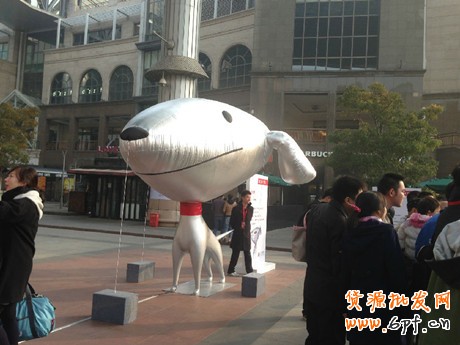 巨鐘下邊的人群,原來(lái)正在圍觀 京東 的雙十一促銷(xiāo)的預(yù)熱推廣。場(chǎng)地中央也是鐘表的圓圈,裝扮好的 京東 吉祥物JOY狗邀請(qǐng)路人上來(lái),一起玩“追趕”游戲,追上JOY狗,參與的觀眾就有獎(jiǎng)品拿。可能是JOY狗太萌太熱情了,現(xiàn)場(chǎng)真有不少大媽、小孩相繼上去做游戲。